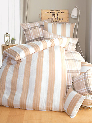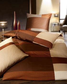 Hustá a jemná tkanina s hladkým lesklým povrchem, která Vás přímo pohladí, je tkaná v atlasové vazbě z jemných česaných přízí, vyrobených z kvalitních druhů dlouhovlákné egyptské bavlny. Je to velmi jemná tkanina dosahující hustoty 200-300 nití na palec čtvereční. Tato kvalita se řadí na nejvyšší evropskou úroveň. Nejnovější povlečení je v příjemných odstínech přírodní béžové barvy v kombinaci s barvou bílou a šedou v novém módním dekoru DECO.