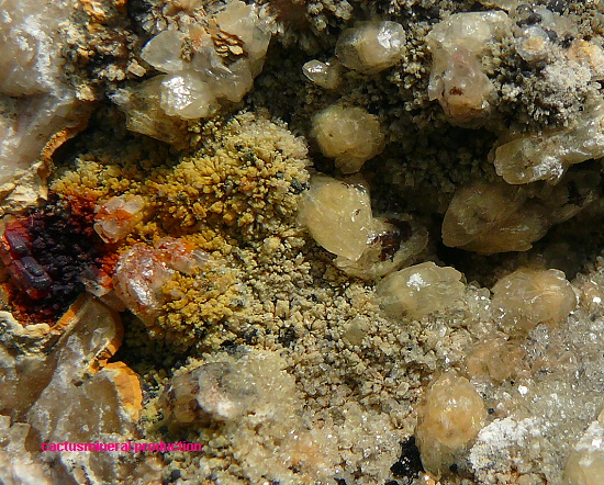- natrolit Velmi zajímavý a estetický vzorek s třemi barevnými variantami natrolitu – oranžová, růžová a červená (Mariánská skála). Velikost vzorku 119 mm.